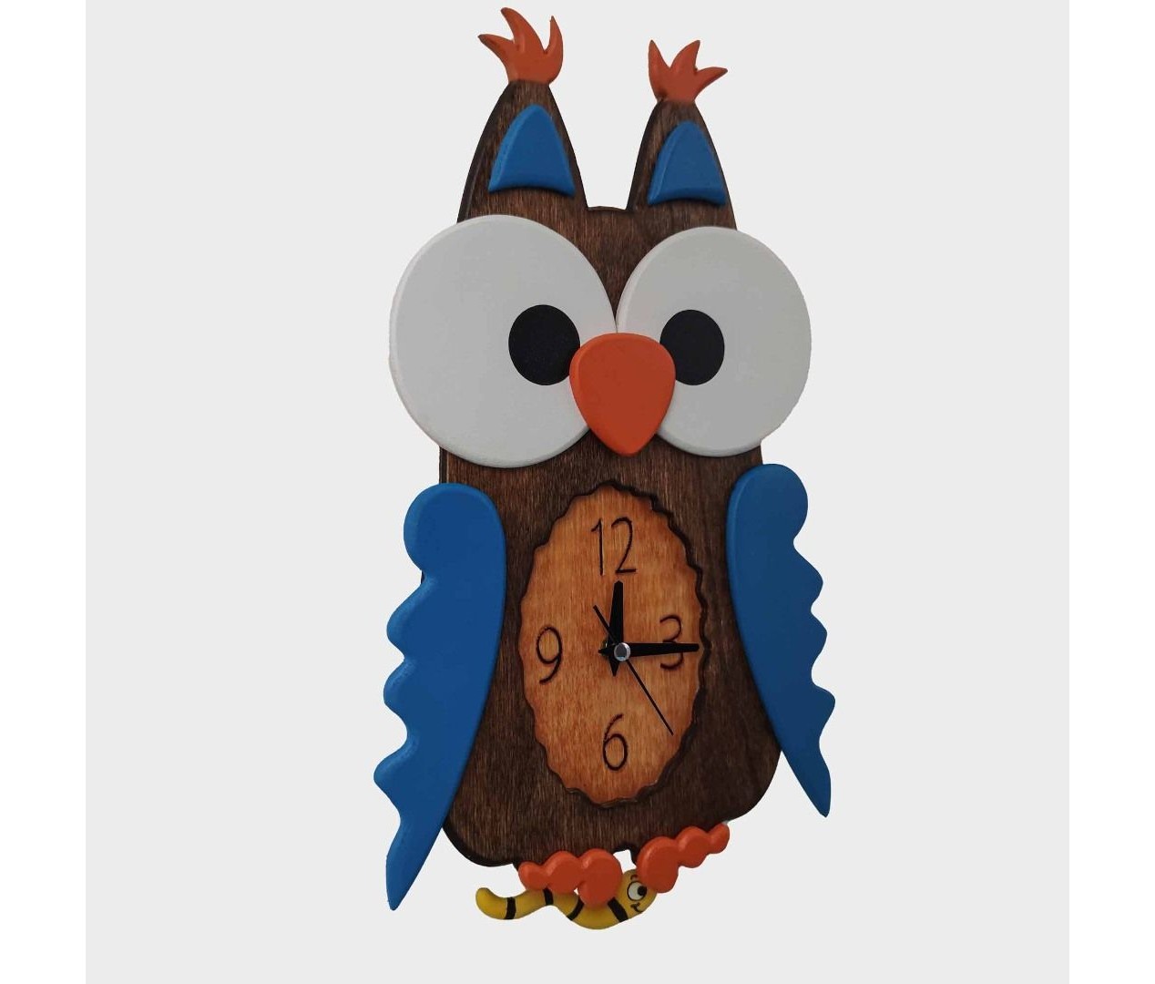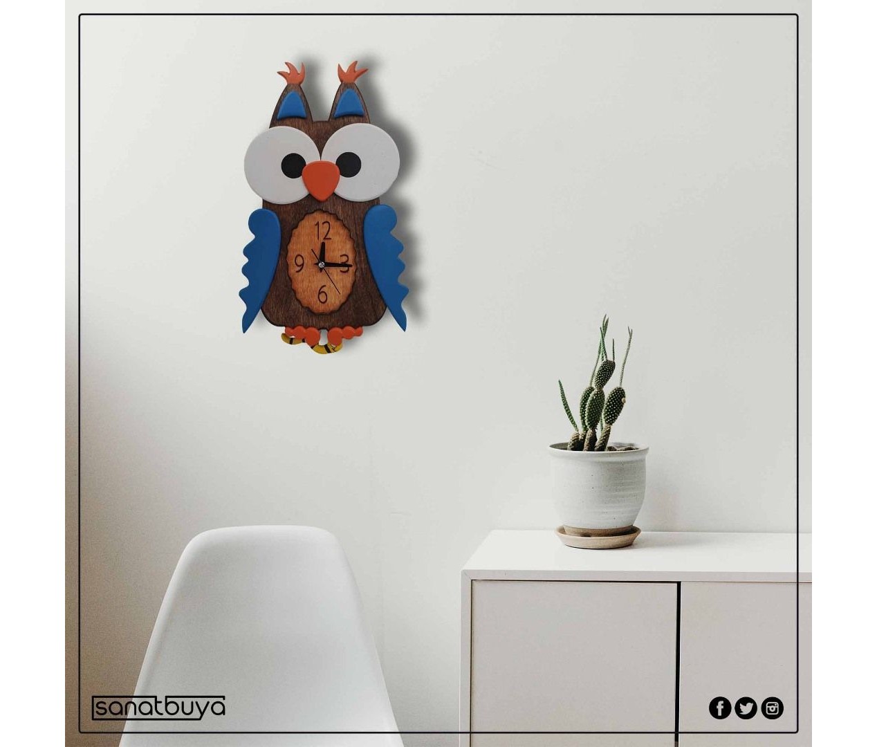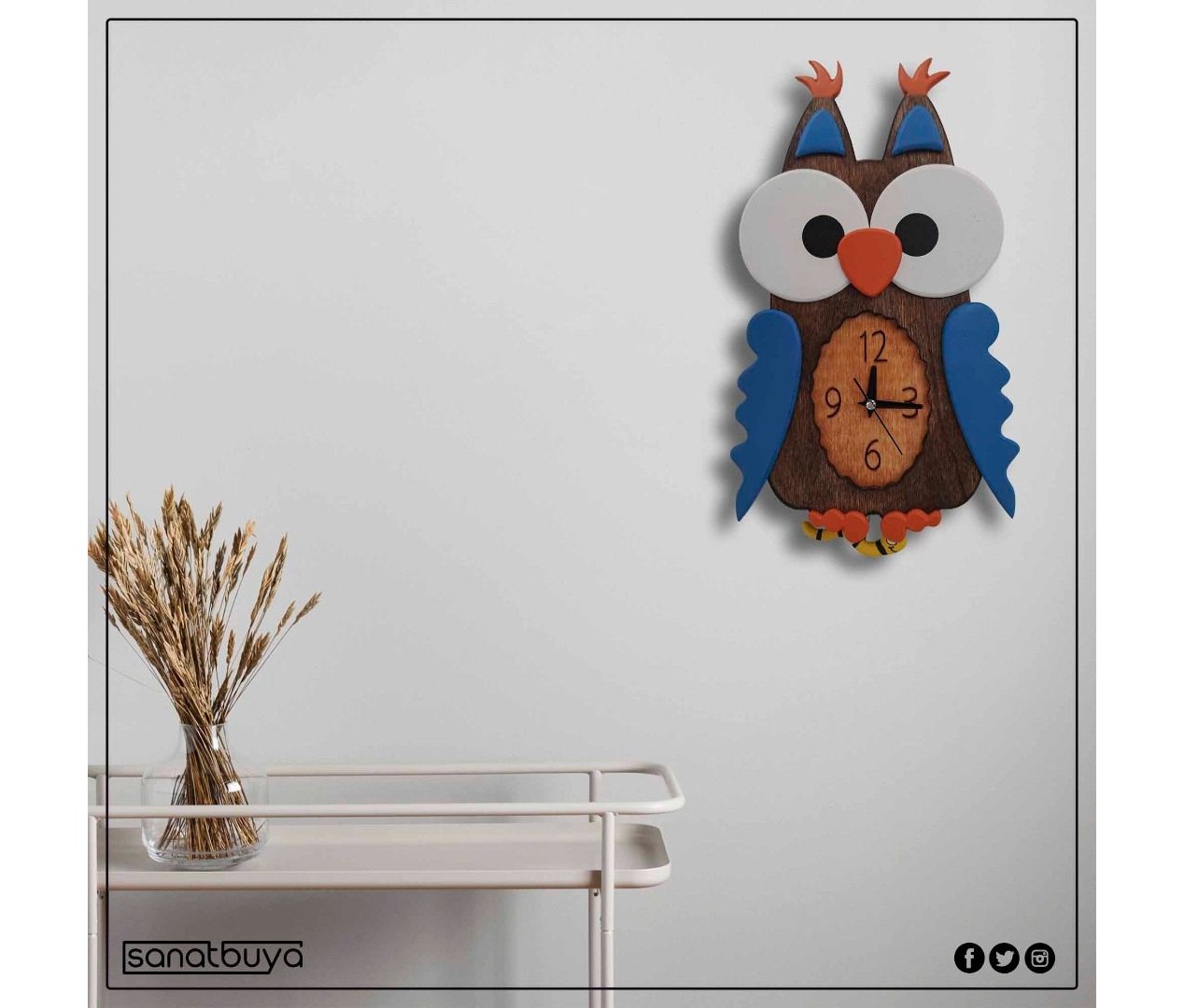 3 Boyutlu Sallanır Sarkaçlı K.Mavi Çılgın Baykuş Saat