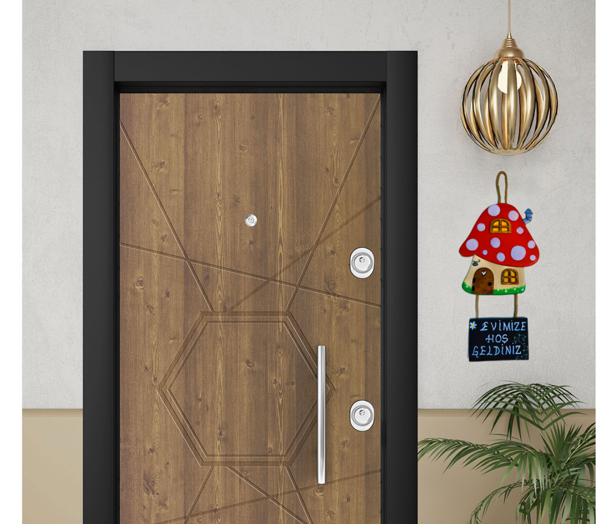 Ahşap Kapı Süsü Mantar Ev
