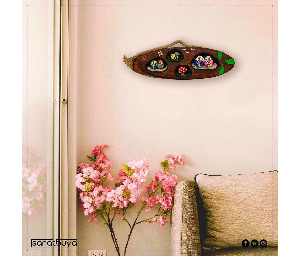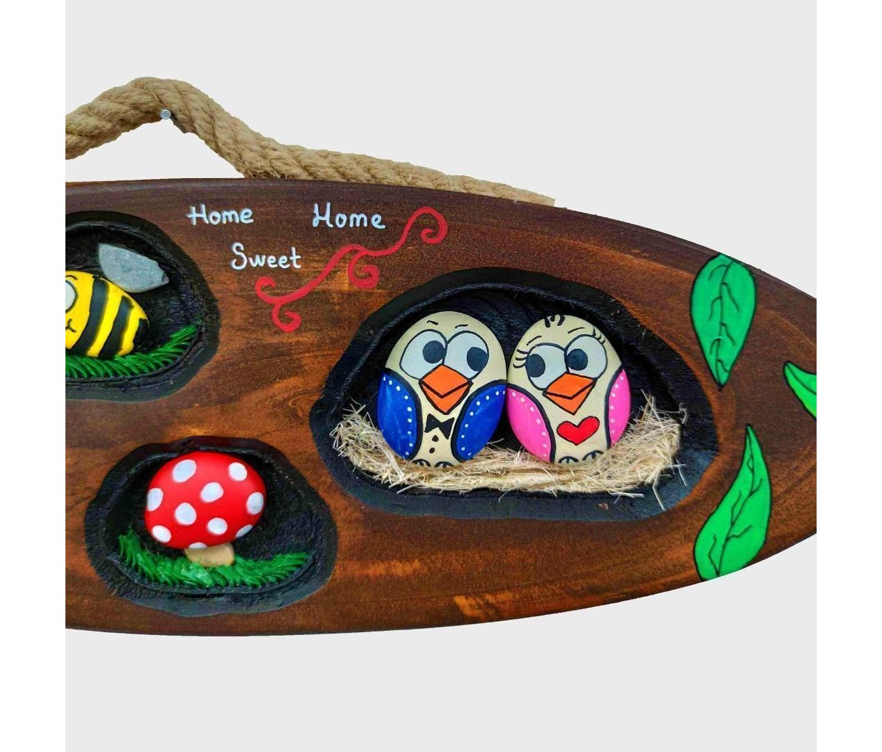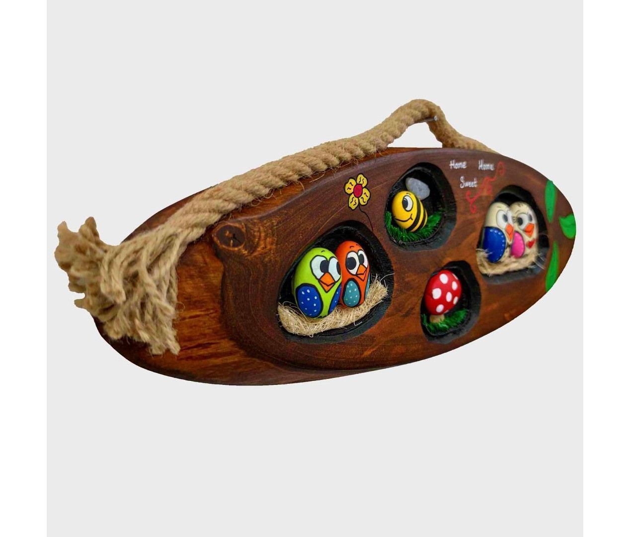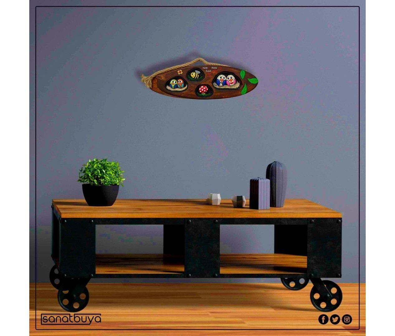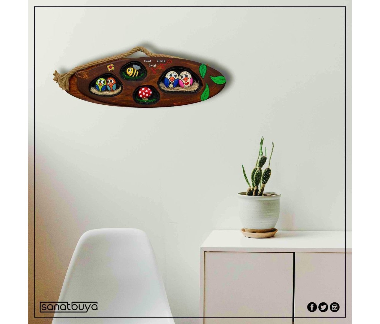 Kütük Taş Tablo (Kestane Renk) 4 Yuvalı 2 Çocuklu Arı Ve Mantarlı