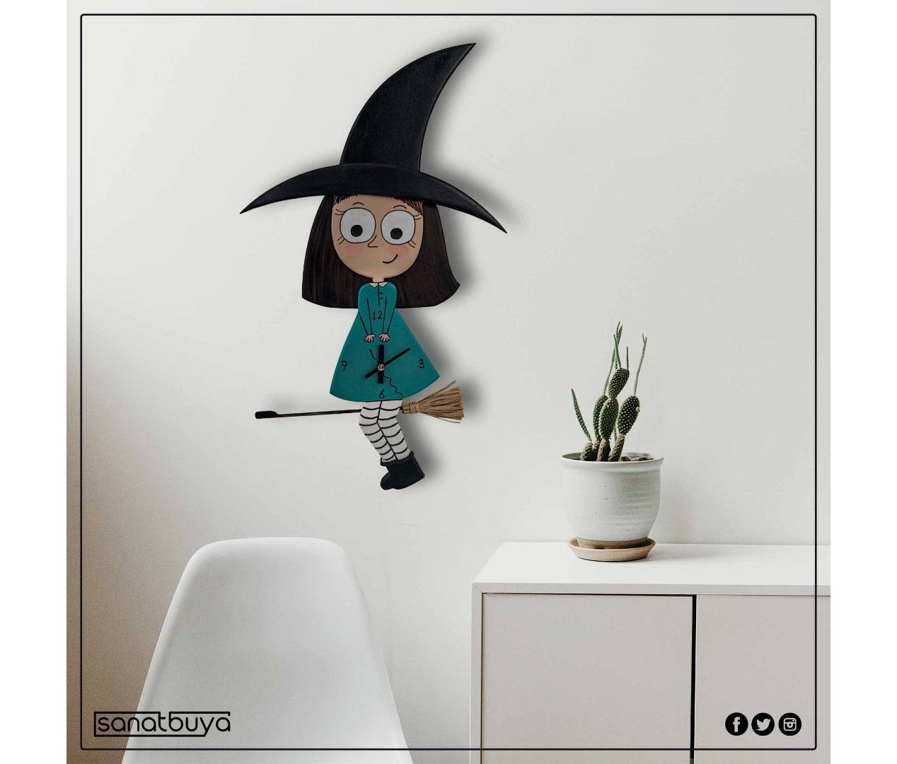 3 Boyutlu Sallanır Sarkaçlı Turkuaz Cadı Saat