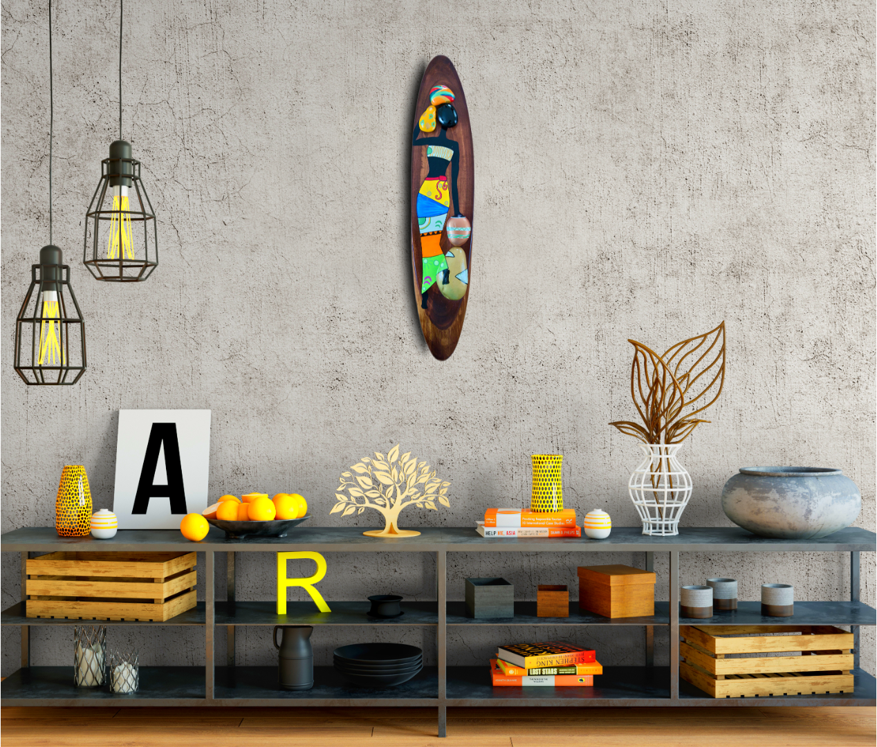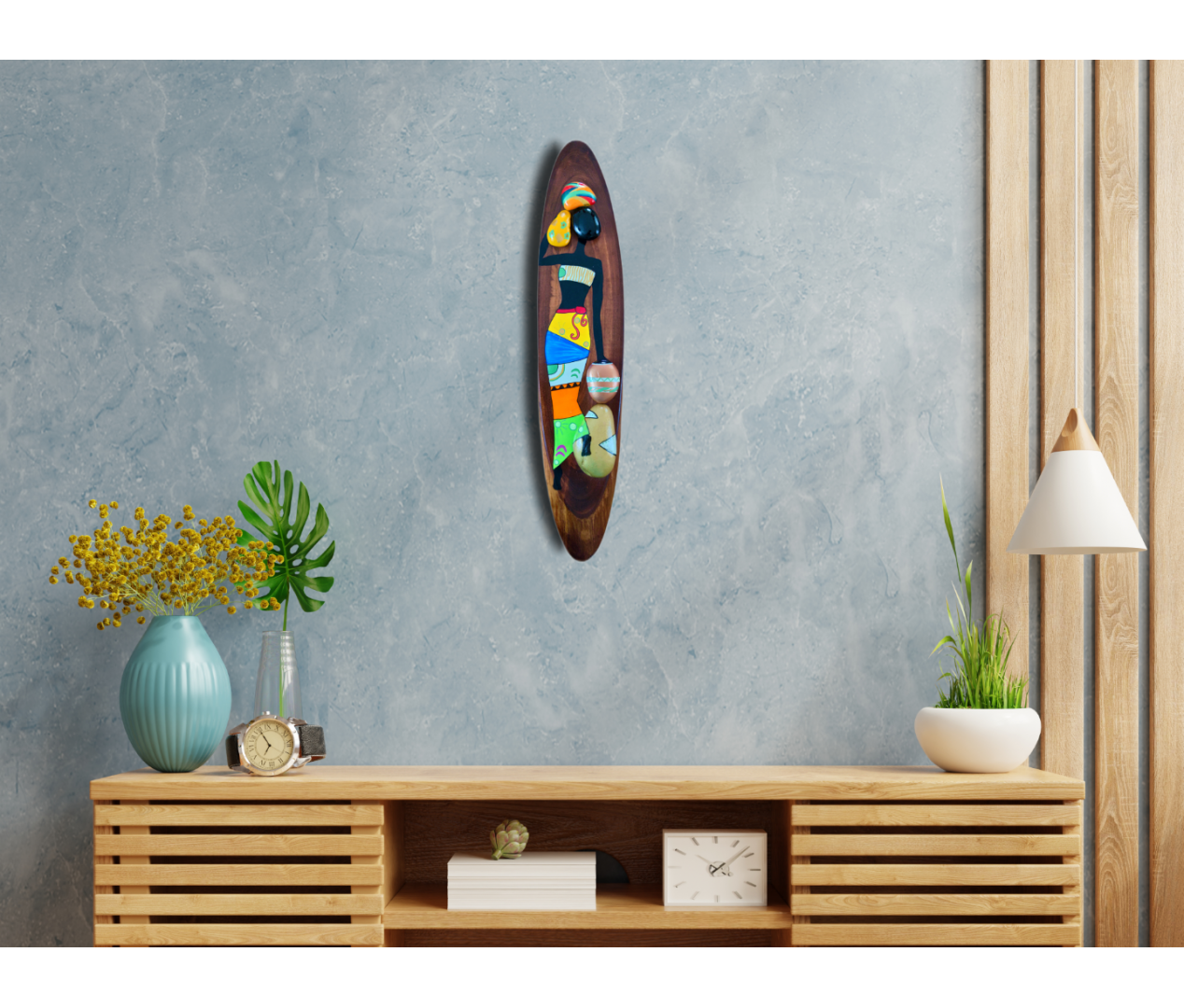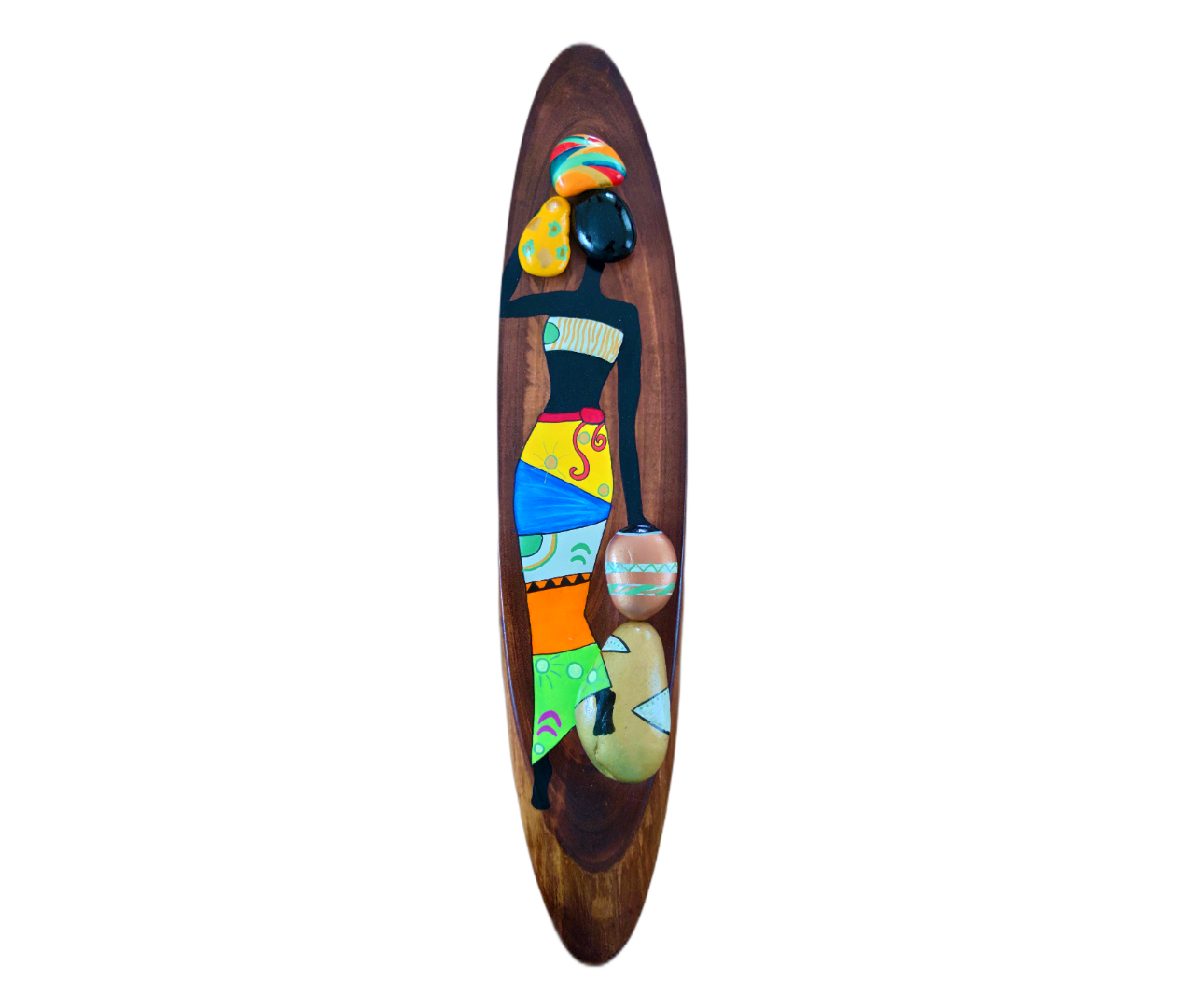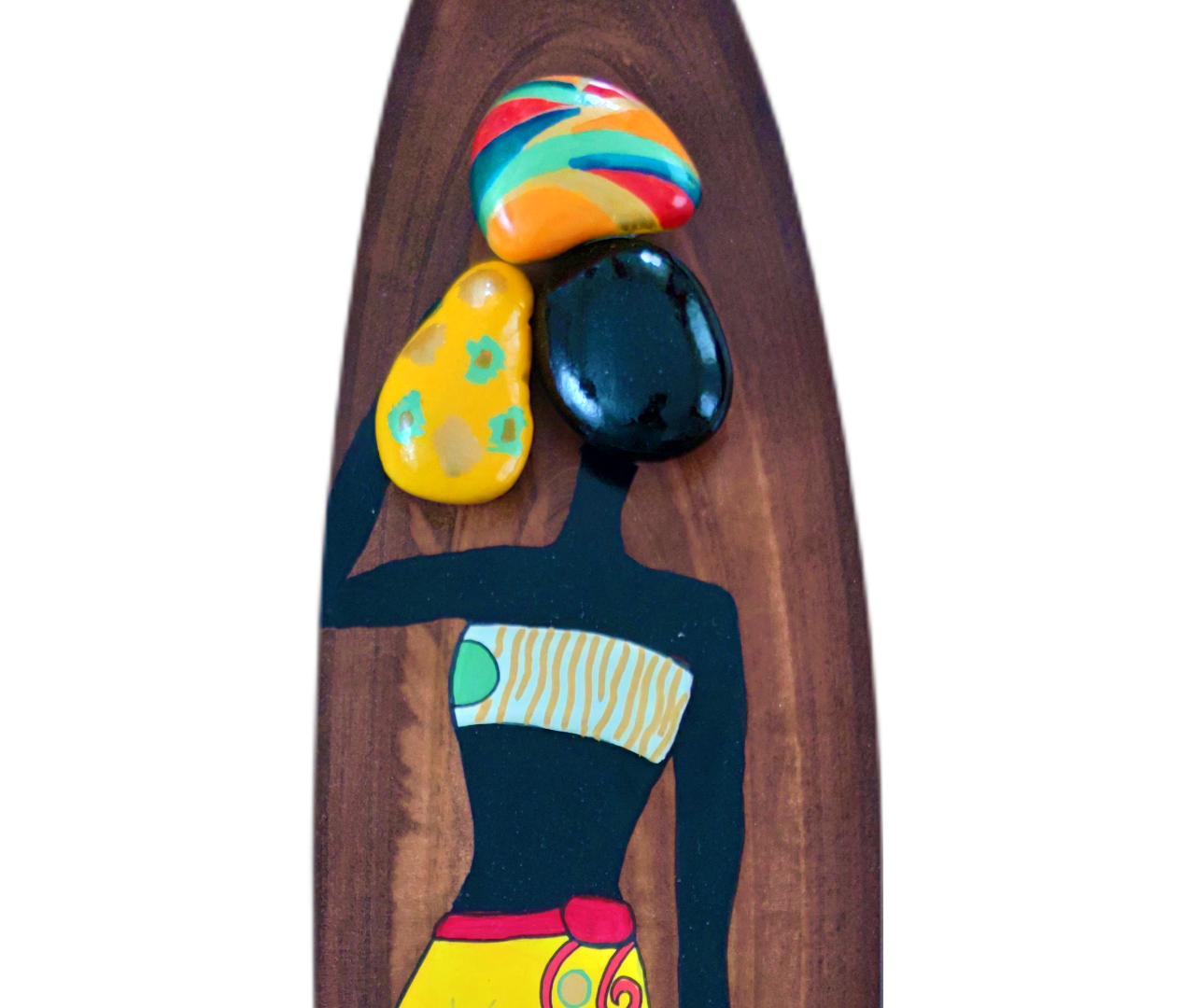 Afrikalı Kadın Kütük Taş Boyama Tablo Model 4 Kestane