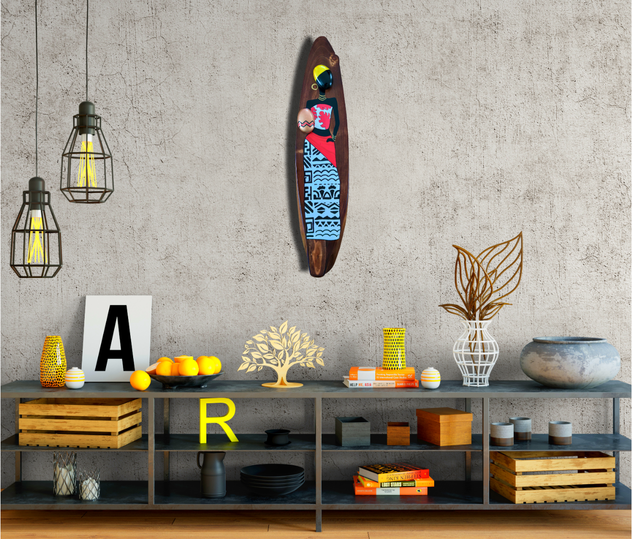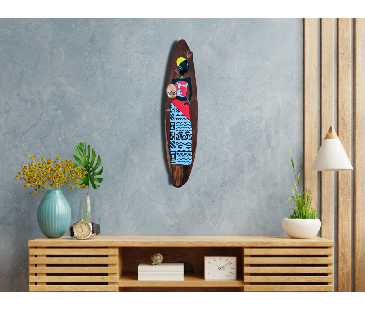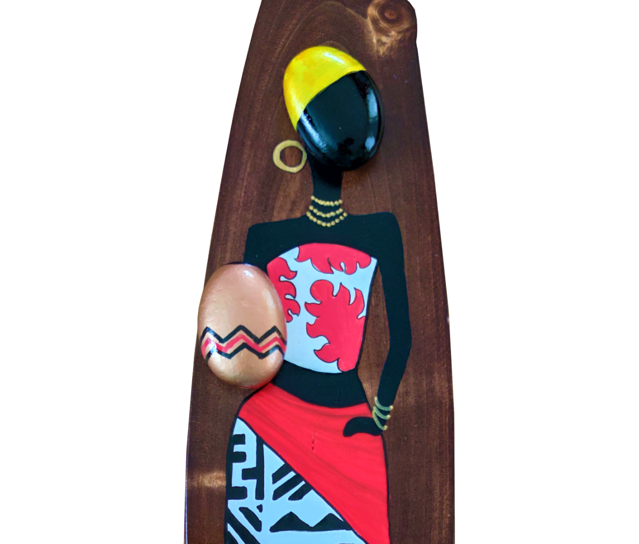 Afrikalı Kadın Kütük Taş Boyama Tablo Model 8 Kestane