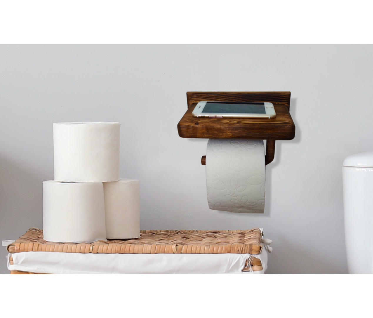 Masif Ahşap Tuvalet Kağıtlığı Ceviz
