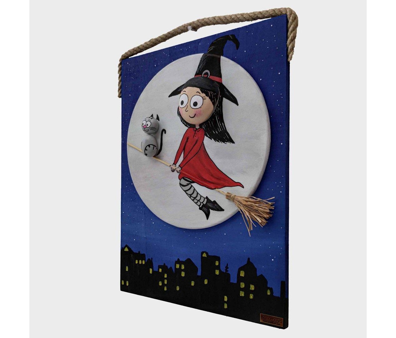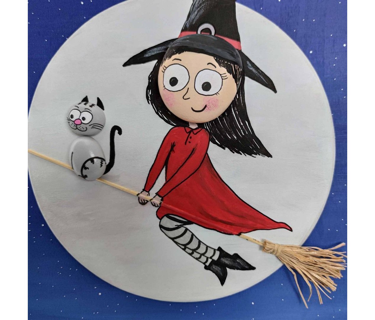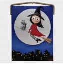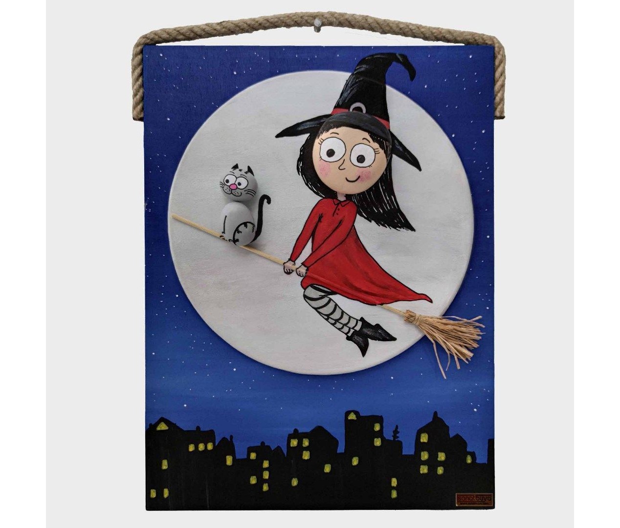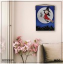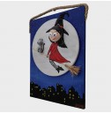 Ahşap Taş Boyama Tablo Süpürgeli Cadı Gece