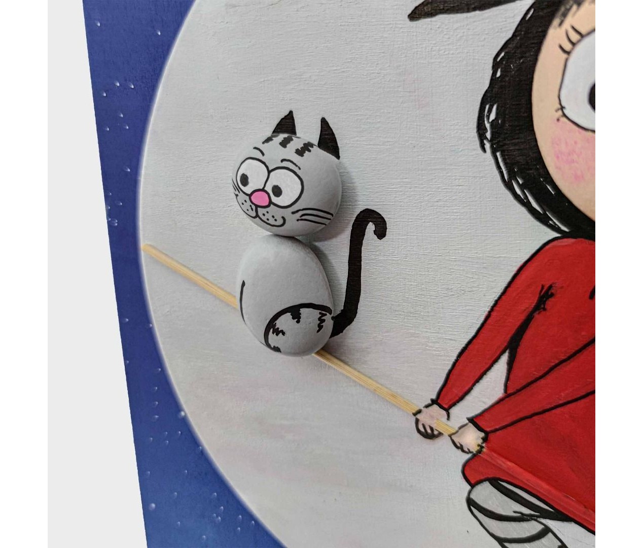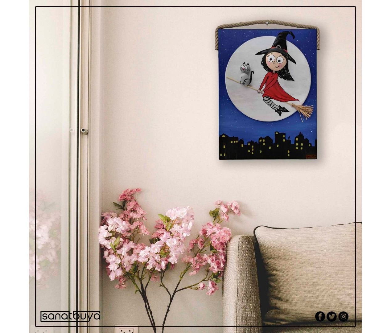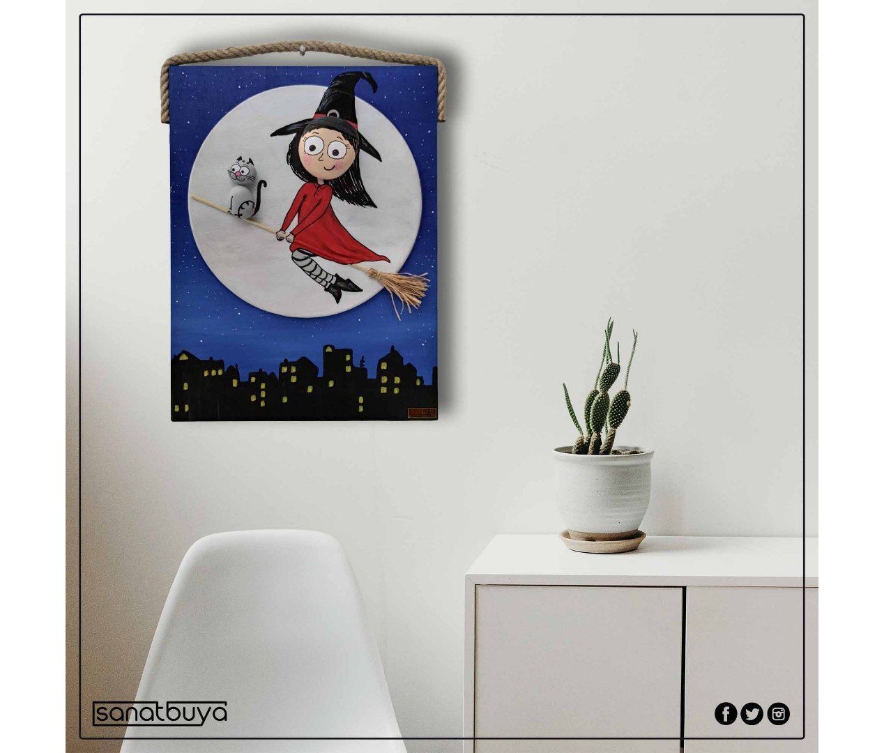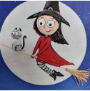 Ahşap Taş Boyama Tablo Süpürgeli Cadı Gece