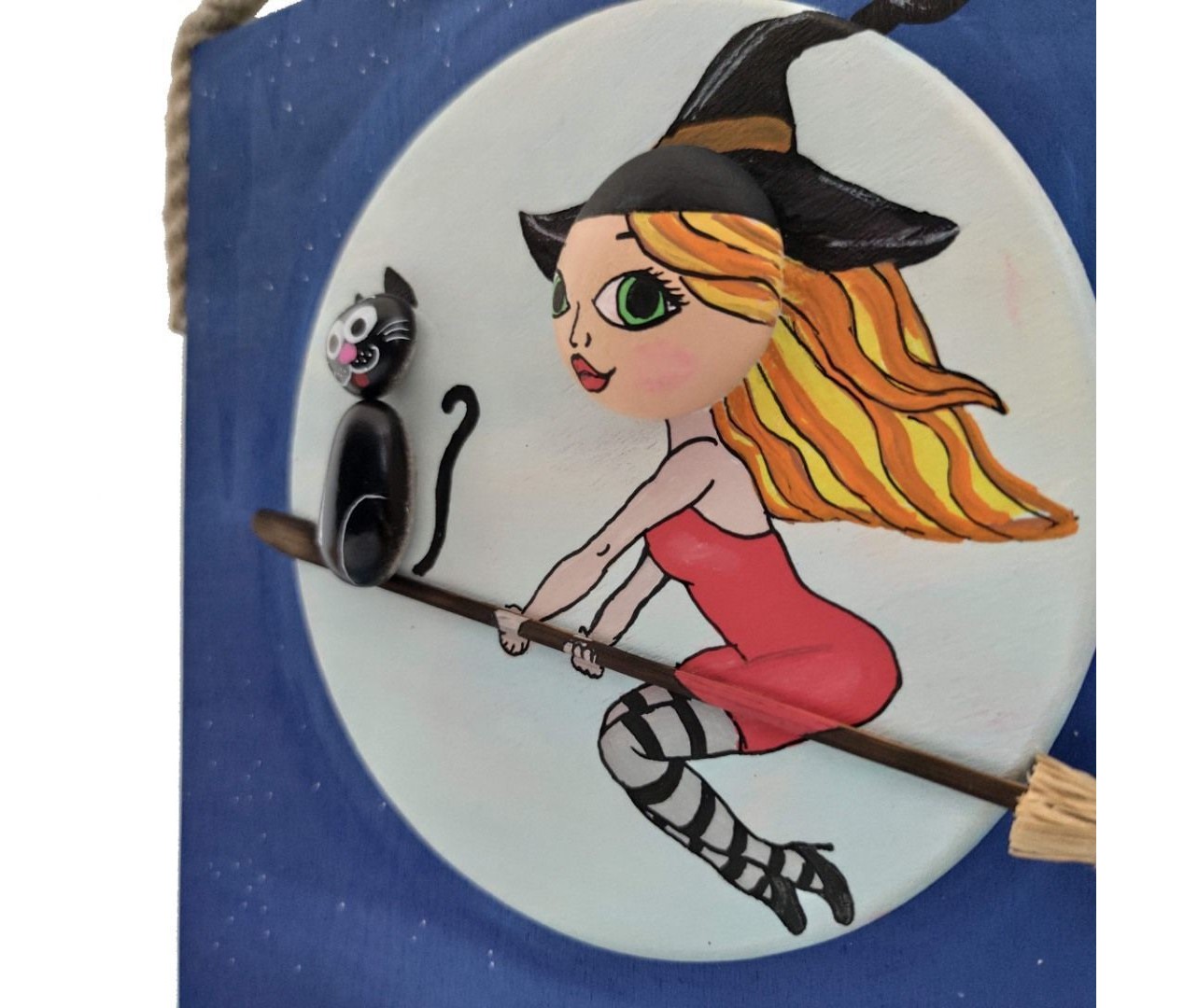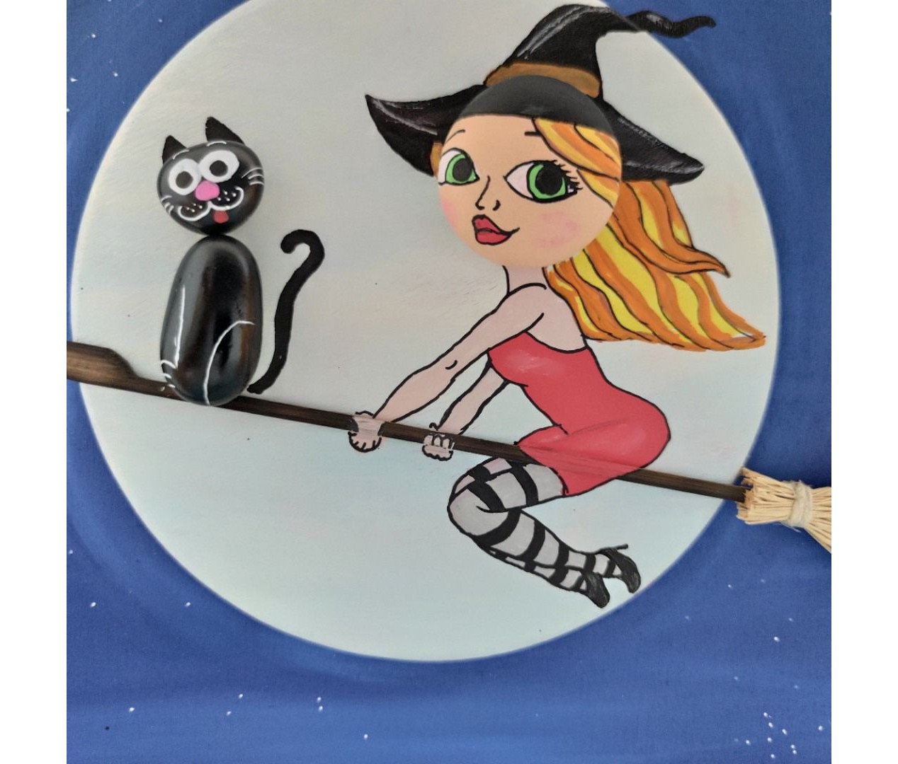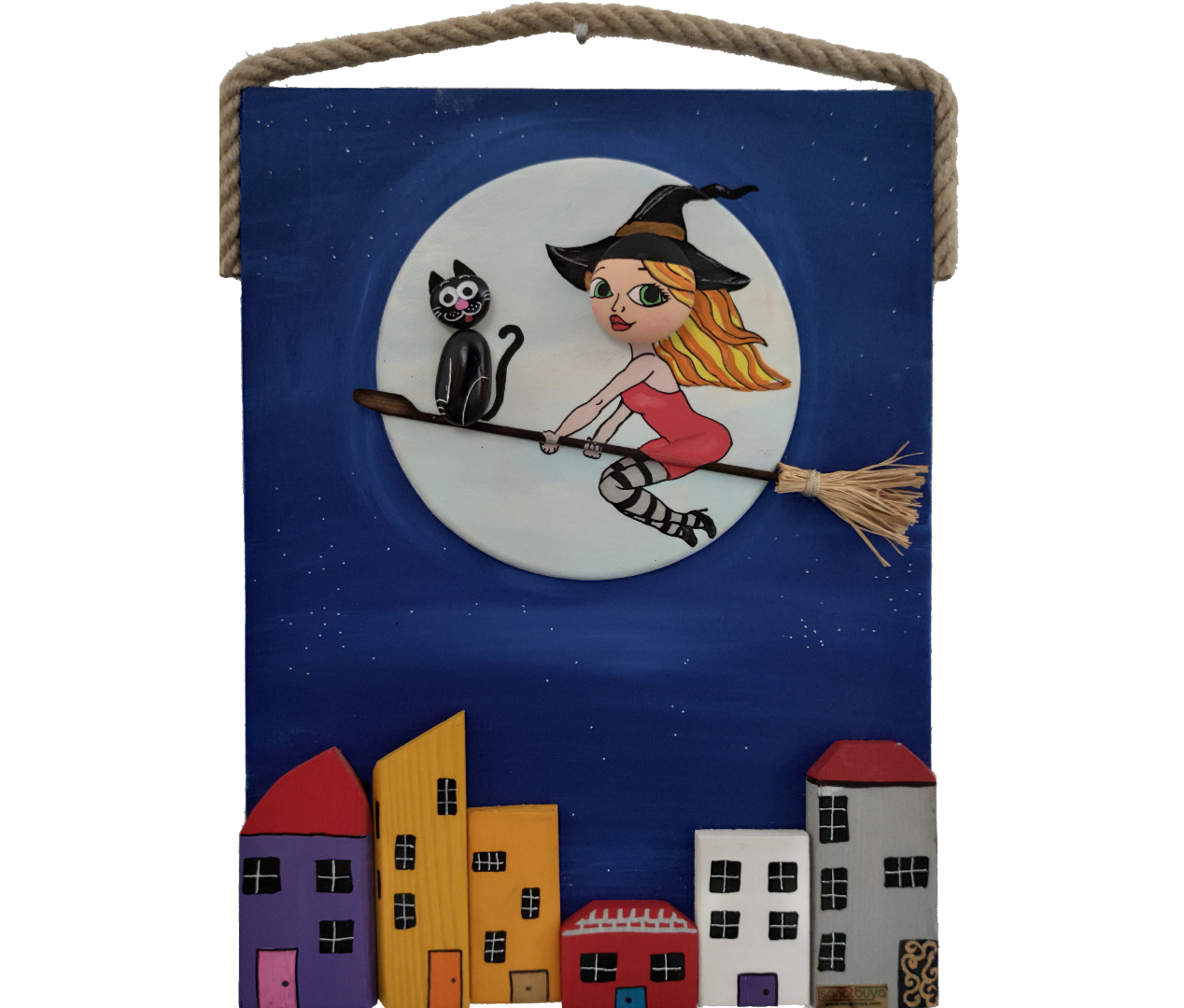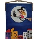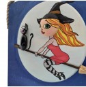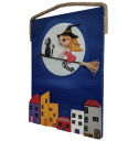 Ahşap Taş Boyama Tablo Ev Temalı Süpürgeli Cadı