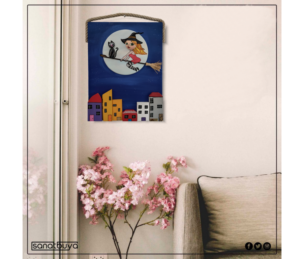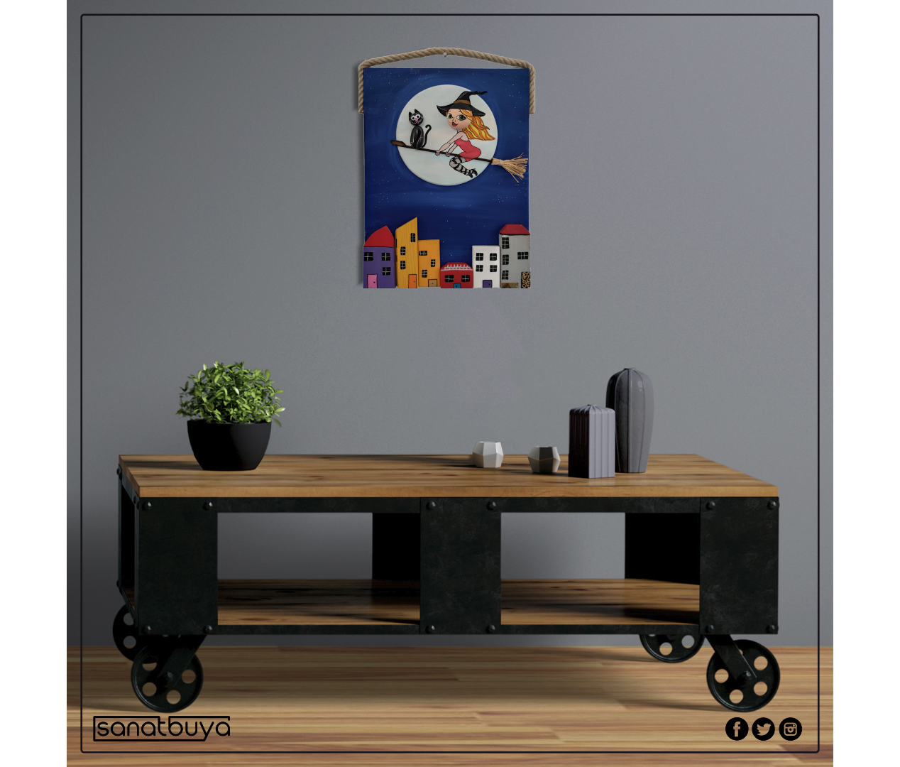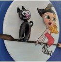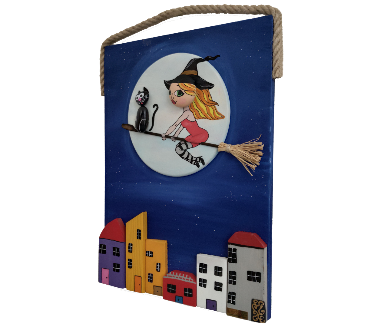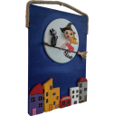 Ahşap Taş Boyama Tablo Ev Temalı Süpürgeli Cadı